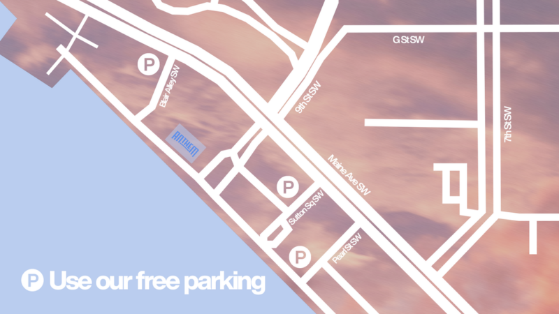Free parking will be available for all guests attending one of our gatherings, pending on site validation, at the Wharf Garage. We recommend entering via one of the three access points listed below.